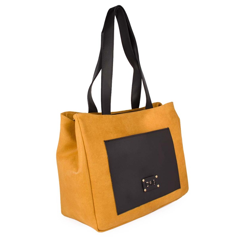 Large Ocher Shoulder Bag, made of ecological leather with absorbent and breathable leather lining. It has 3 internal pockets, one with